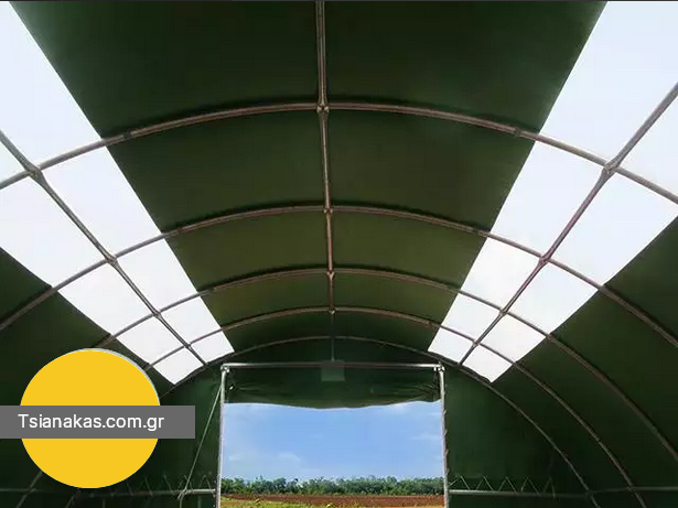 Ετικέτες: 9, 15m x 10m x 4, 5m - Τοξοτή αποθήκη απο μουσαμά διαστάσεων 9, 15m x 10m x 4, 5m με μουσαμά βάρους 2300γρ και φεγγίτες