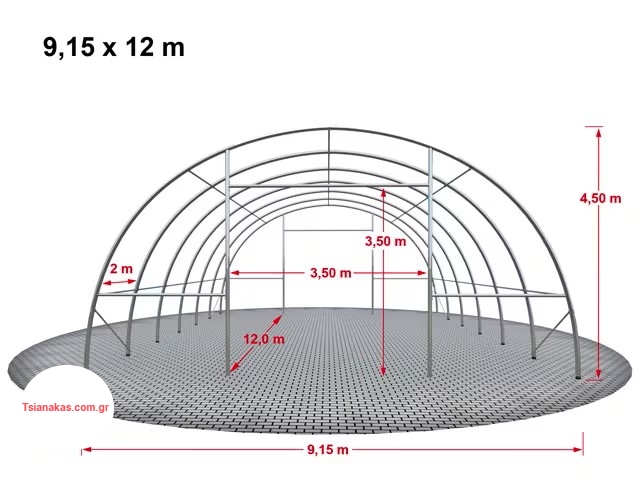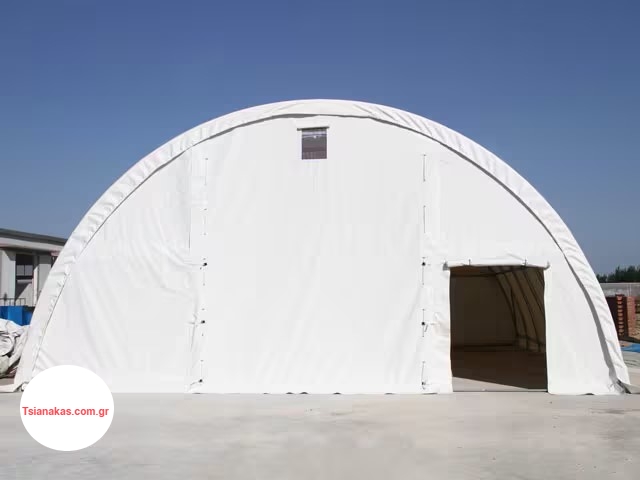 9,15m x 12m x 4,5m - Τοξοτή αποθήκη απο μουσαμά διαστάσεων 9,15m x 12m x 4,5m με μουσαμά βάρους 2300γρ