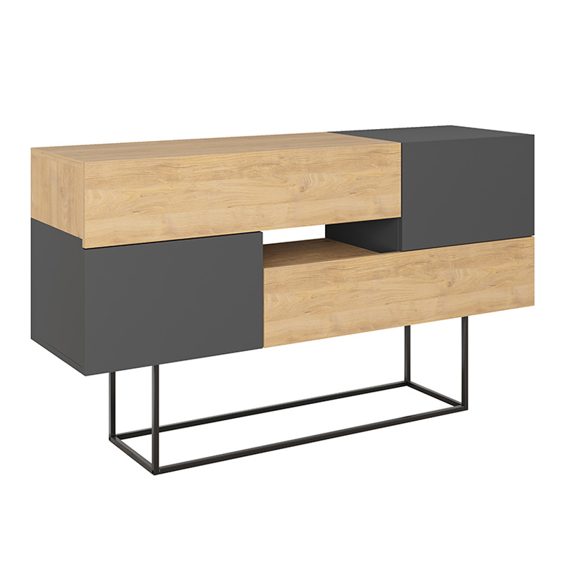 Κονσόλα - μπουφές Eros Megapap από μελαμίνη φυσικό οξιάς - ανθρακί 145x40x82εκ.