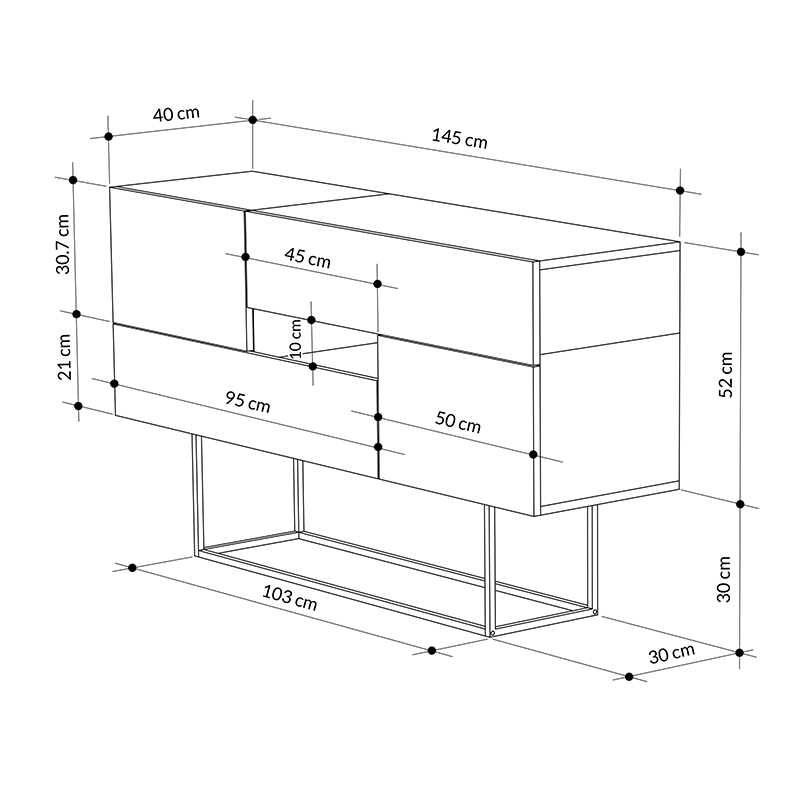 - Διαστάσεις: Μήκος 145 x Βάθος 40 x Ύψος 82 εκ.