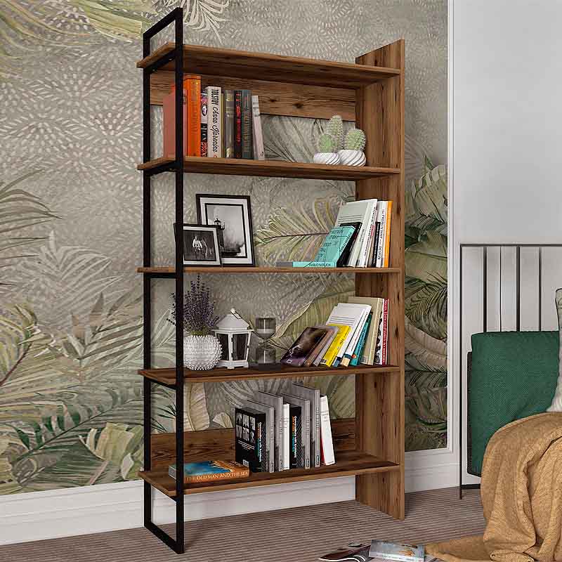 Βιβλιοθήκη μελαμίνης Cecilia Megapap χρώμα καπνιστή καρυδιά 91,8x34,8x180εκ.