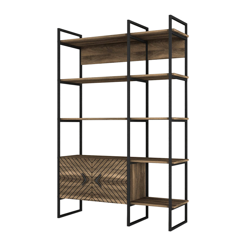 Βιβλιοθήκη Eduardo Megapap μεταλλική - μελαμίνης χρώμα καρυδί 120x39x180εκ.