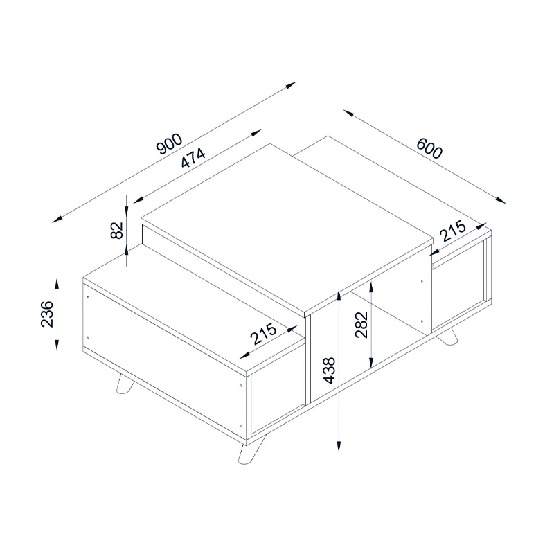 - Διαστάσεις: Μήκος 90 x Βάθος 60 x Ύψος 43,8 εκ.