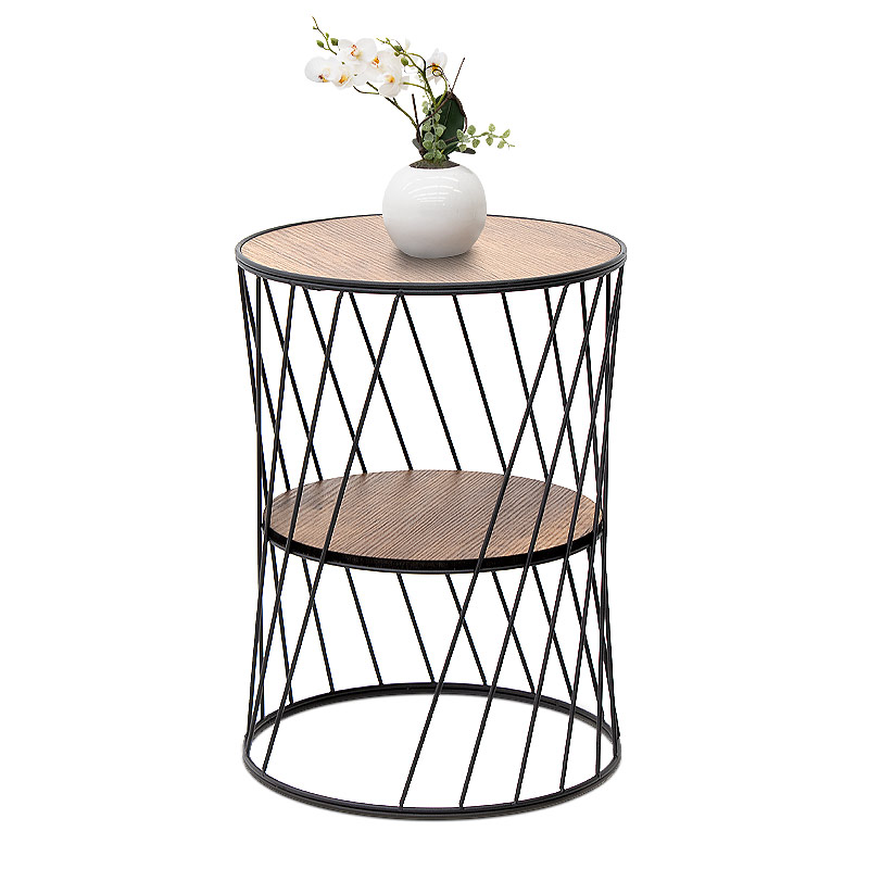 Βοηθητικό τραπεζάκι Jaspin Megapap μεταλλικό - Mdf χρώμα μαύρο - καρυδί 32x32x44εκ.