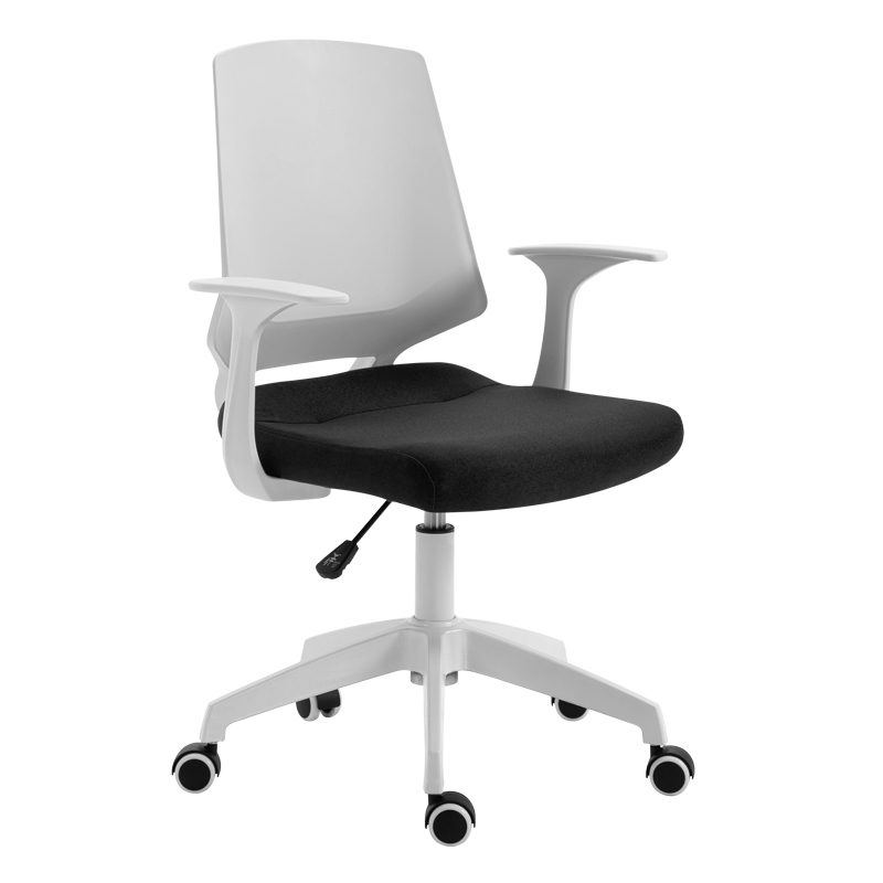 A1150-W πολυθρόνα γραφείου με minimal σχεδίαση και λευκή πλάτη χωρίς υφασμάτινη επένδυση για μέγιστη ευκολία στο καθάρισμα και ανθεκτικότητα. Η έδρα είναι ενδεδυμένη με μαύρο ύφασμα και προσφέρει ξεκούραστο κάθισμα. Τα μπράτσα το αμορτισέρ και η βάση είναι λευκά. Το κάθισμα ρυθμίζεται στο επιθυμητό ύψος ανάλογα με το ύψος του γραφείου που χρησιμοποιούμε και το ύψος του χρήστη.