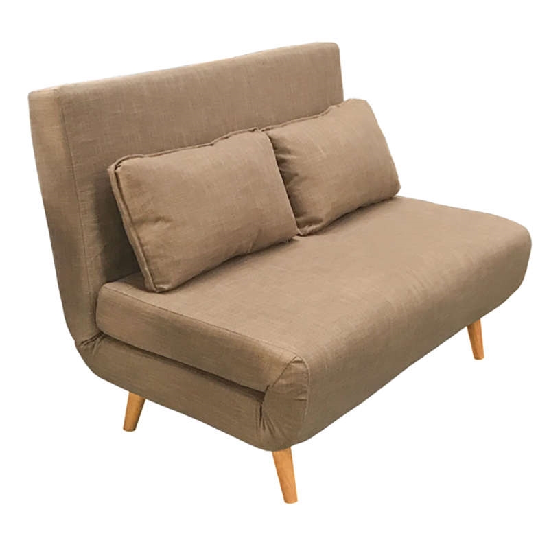 Sara καναπές με ύφασμα χρώματος καφέ και διακοσμητικά μαξιλάρια. Ένας μοντέρνος και καλαίσθητος καναπές, με εύκολο στη χρήση μηχανισμό για τη μετατροπή του σε κρεβάτι ανοίγοντας τα φερμουάρ που υπάρχουν στην κάτω πλευρά του. Ξεδιπλώνοντας τα πτυσσόμενα ποδαράκια, έχετε στη στιγμή ένα επιπλέον βοηθητικό κρεβάτι στο χώρο σας. Μπορείτε να τον συνδυάσετε υπέροχα με την πολυθρόνα Sara για στο σαλόνι σας.