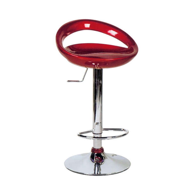 BAR/18 σκαμπό εσωτερικού χώρου με ιδιαίτερο σχέδιο στην πλάτη. Κάθισμα από ABS σε κόκκινο χρώμα και βάση χρωμίου με υποπόδιο για στήριξη του ποδιού. Διαθέτει αμορτισέρ για ρύθμιση ύψους. Ένα σκαμπό που ομορφαίνει τον χώρο σας.