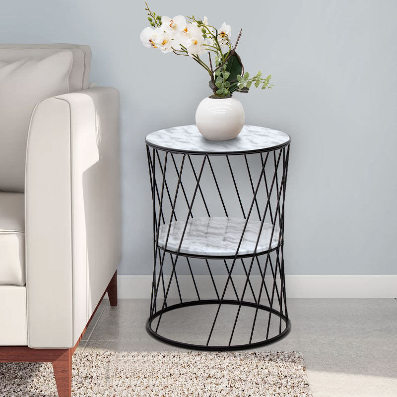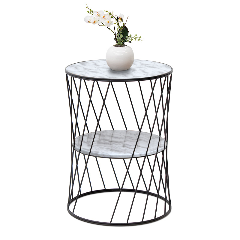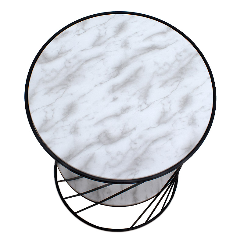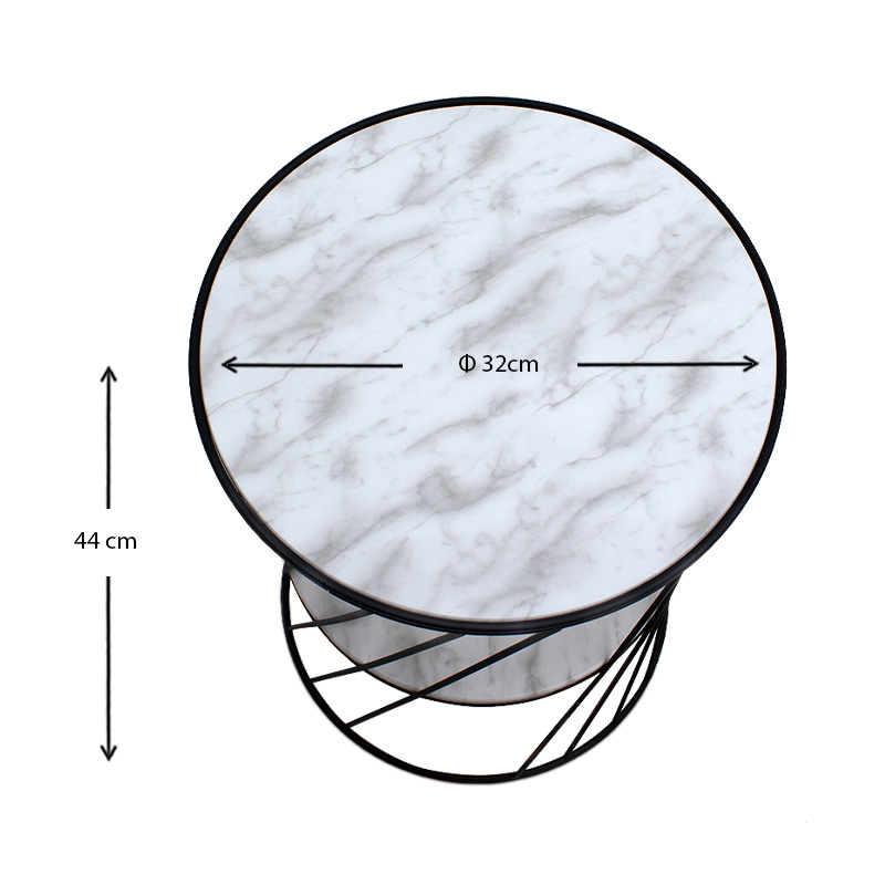 Βοηθητικό τραπεζάκι Jaspin Megapap μεταλλικό - Mdf χρώμα μαύρο-λευκό εφέ μαρμάρου 32x32x44εκ.