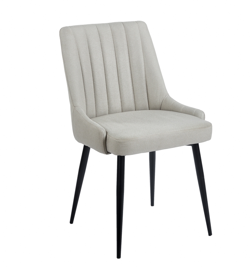 Megan καρέκλα με μεταλλικό σκελετό βαφής σε χρώμα μαύρο.Το κάθισμα είναι ενδεδυμένο από ύφασμα σε χρώμα light beige.Ο σχεδιασμός της συνδυάζει το κλασικό με το μοντέρνο,δημιουργώντας ένα κομψό σύνολο για να διακοσμήσετε τον χώρο σας.