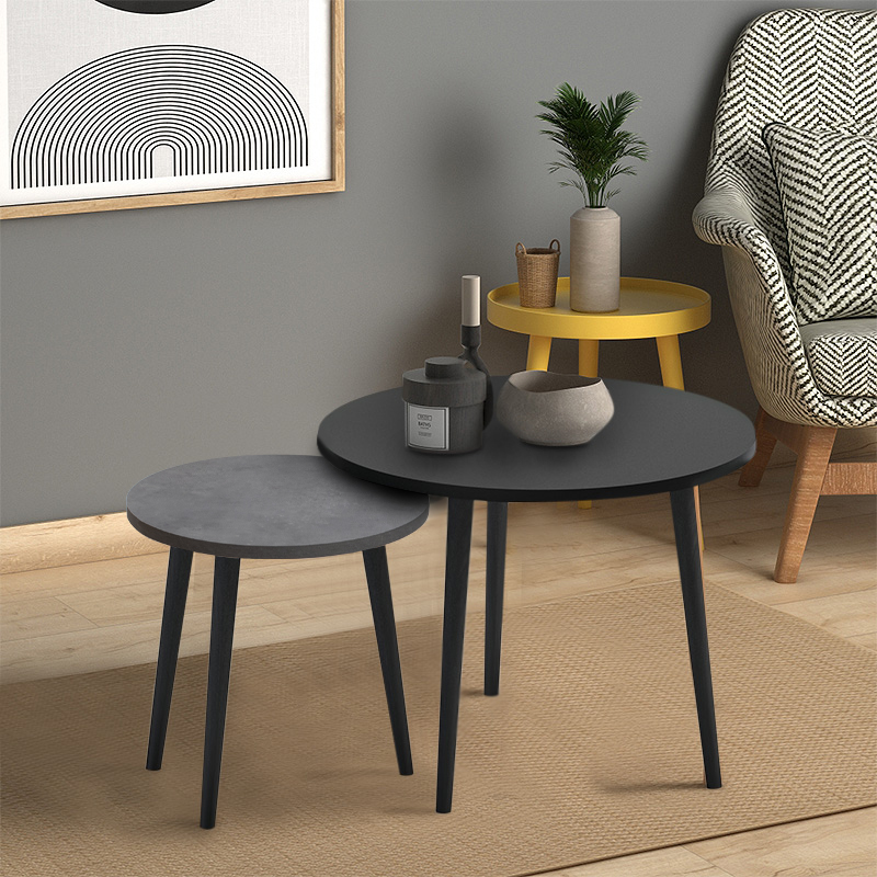 Τραπεζάκι σαλονιού σετ 2 τμχ Roma Megapap χρώμα μαύρο - γκρι ρετρό 60x60x46εκ.