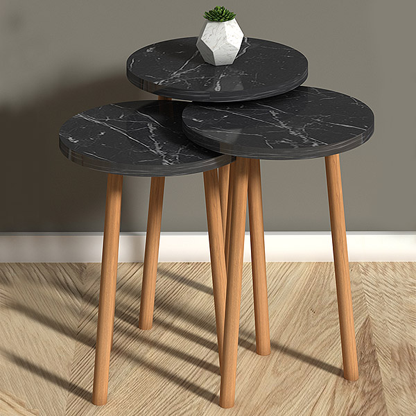 Βοηθητικά τραπεζάκια Roma Megapap από μελαμίνη χρώμα σκούρο εφέ μαρμάρου