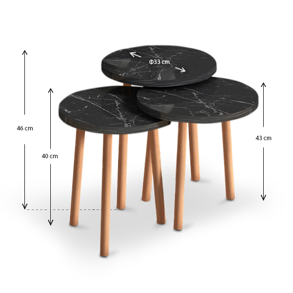 • Διαστάσεις μεσαίου τραπεζιού: Μήκος 33 x Βάθος 33 x Ύψος 43 εκ.