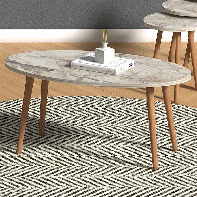 Τραπεζάκι σαλονιού + βοηθητικά τραπεζάκια Elips Megapap από μελαμίνη χρώμα εφέ μαρμάρου