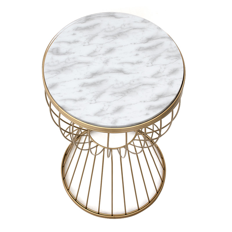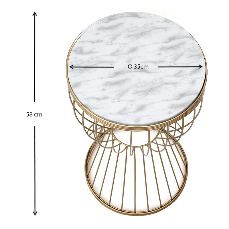 Βοηθητικό τραπεζάκι Aldora Megapap μεταλλικό - Mdf χρώμα χρυσό - λευκό εφέ μαρμάρου 35x35x58εκ.