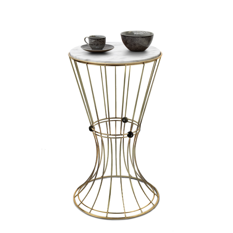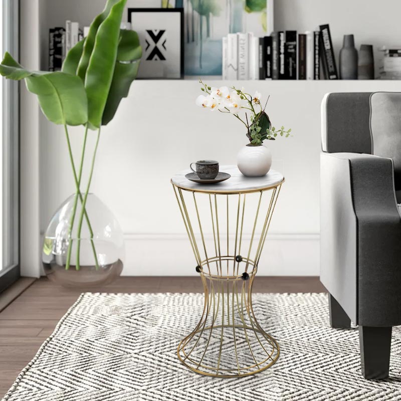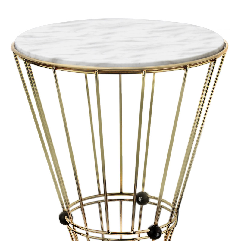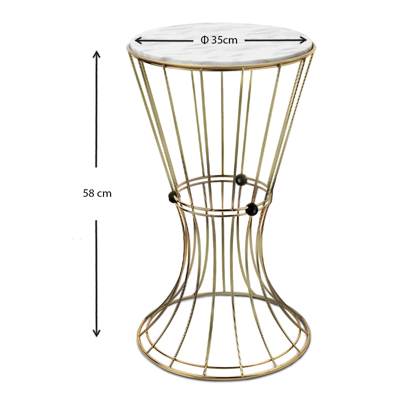 Βοηθητικό τραπεζάκι Girene Megapap μεταλλικό - Mdf χρώμα χρυσό - λευκό εφέ μαρμάρου 35x35x58εκ.