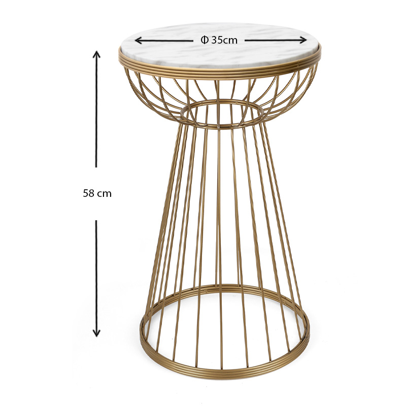Βοηθητικό τραπεζάκι Mantare Megapap μεταλλικό - Mdf χρώμα χρυσό - λευκό εφέ μαρμάρου 35x35x58εκ.