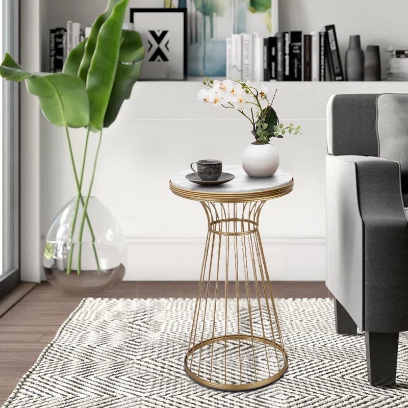Βοηθητικό τραπεζάκι Tekosi Megapap μεταλλικό - Mdf χρώμα χρυσό - λευκό εφέ μαρμάρου 35x35x58εκ.