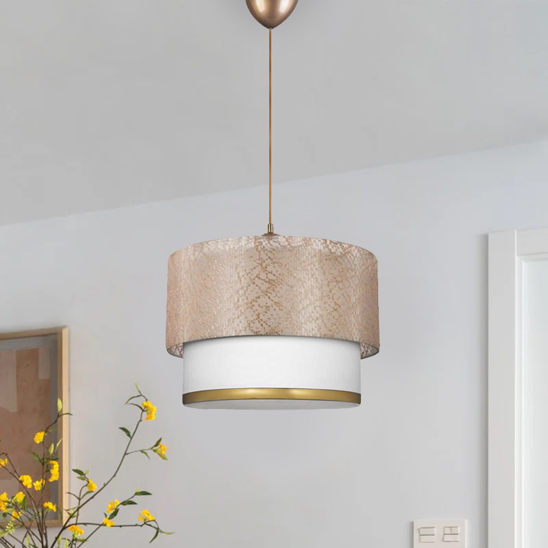 Φωτιστικό οροφής Barnhart Megapap υφασμάτινο μονόφωτο χρώμα χρυσό/κρεμ 30x20x70εκ.