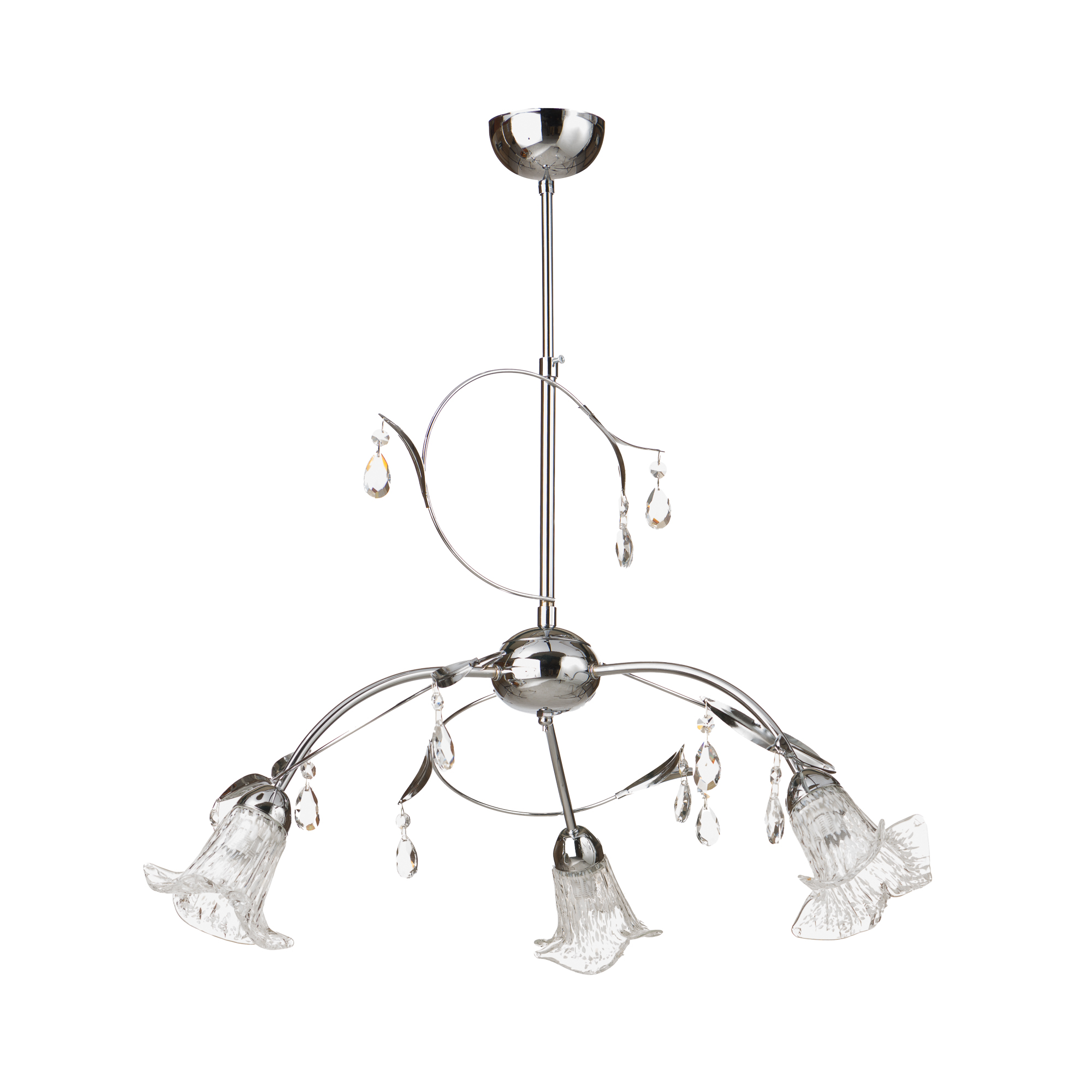 Φωτιστικό οροφής τρίφωτο με σκελετό κατασκευασμένο από μέταλλο εξαιρετικής ποιότητας και ανθεκτικότητας στη φθορά και στο χρόνο, σε νίκελ χρώμα. Διαθέτει τρεις θέσεις για λαμπτήρες με φυσητά γυαλιά. Φέρει διακοσμητικούς κρυστάλλους σε σχήμα αμυγδάλου οι οποίοι προσδίδουν μία επιπλέον πολυτέλεια στο σύνολο. Μία εντυπωσιακή επιλογή που συνδυάζει την κομψότητα και τη διαχρονικότητα και θα αναβαθμίσει τον χώρο που θα τοποθετηθεί.