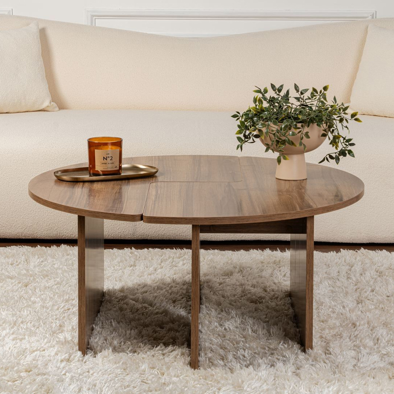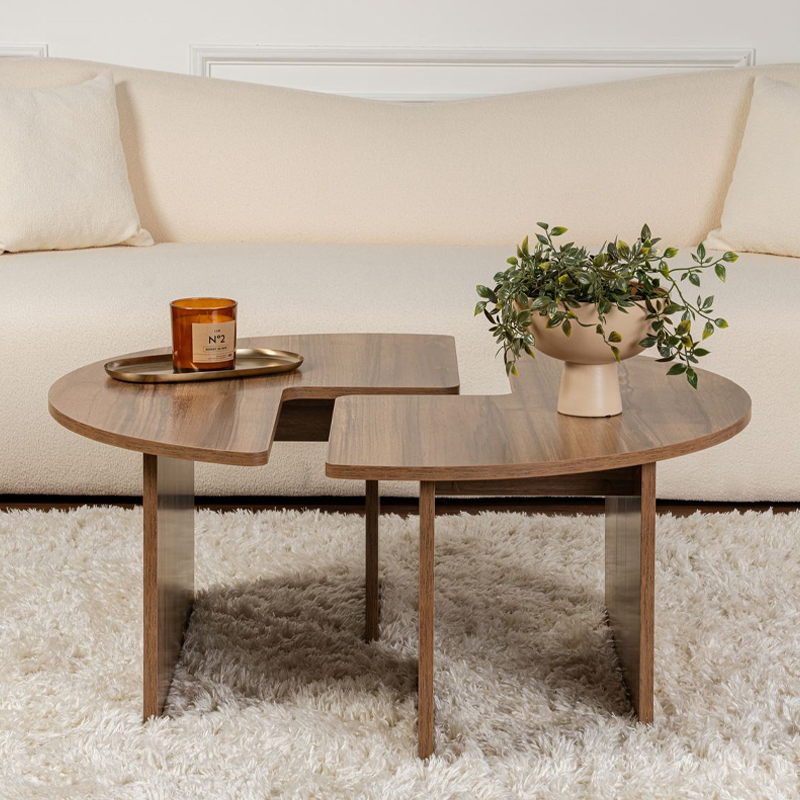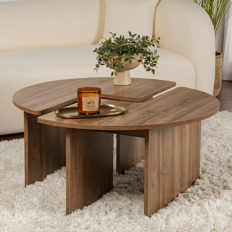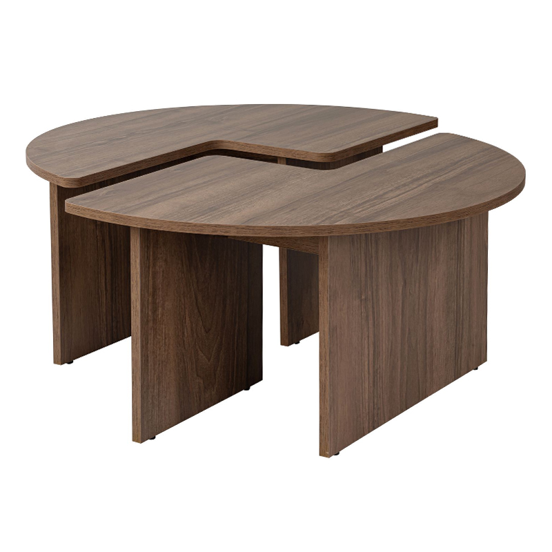 Τραπεζάκι σαλονιού σετ 2 τμχ Moira Megapap χρώμα καρυδί Ø90x41εκ.