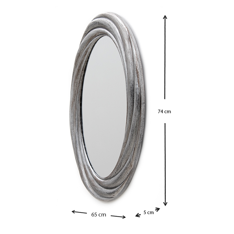 Kαθρέφτης τοίχου οβάλ πλαστικός σε χρώμα ασημί 76x56