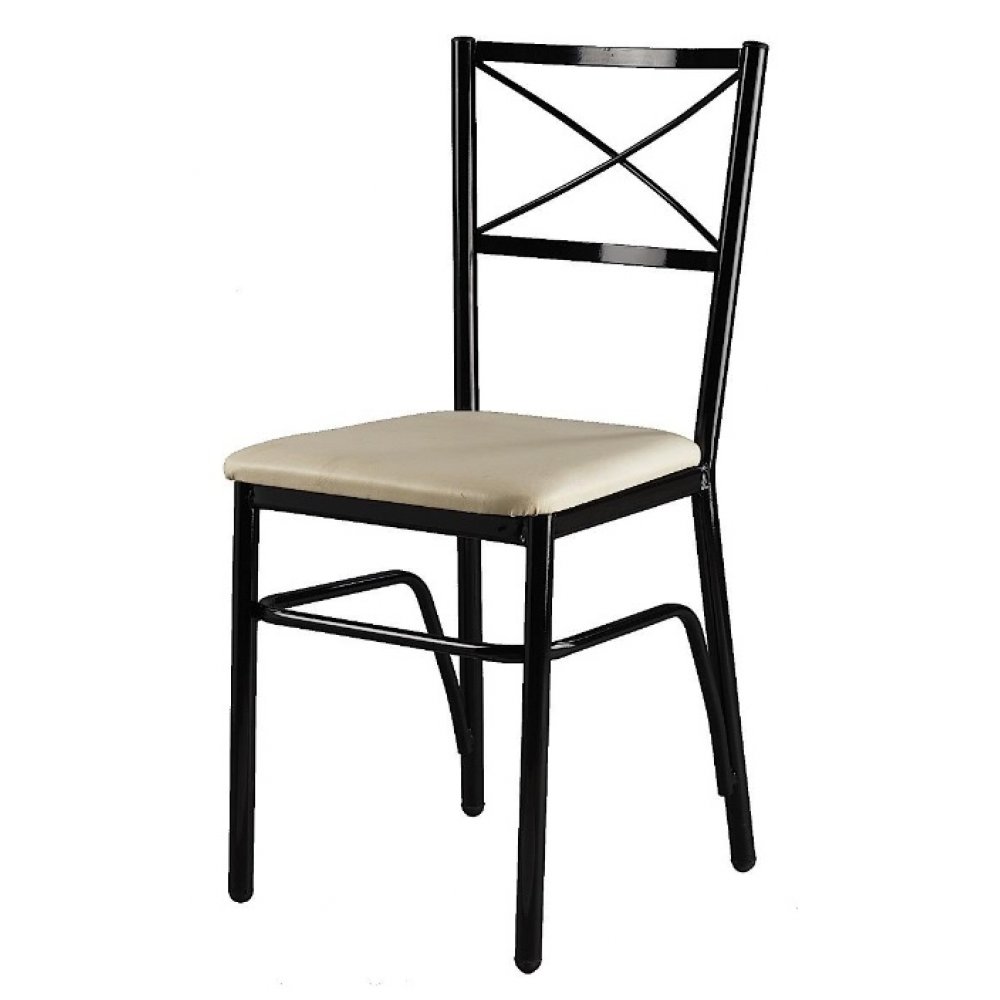 Καρέκλα κατασκευασμένη από μέταλλο και τεχνόδερμα υψηλής ποιότητας σε χρώμα σκελετού μαύρο και καθίσματος λευκό. Ιδανική επιλογή για την κουζίνα ή την τραπεζαρία σας όπου θα σας χαρίσει στιγμές αναπαυτικότητας και χαλάρωσης. Η καρέκλα μπορεί να συνδυαστεί με μεγάλη ποικιλία χρωμάτων και επίπλων χάρη στο μοντέρνο σχέδιο της.