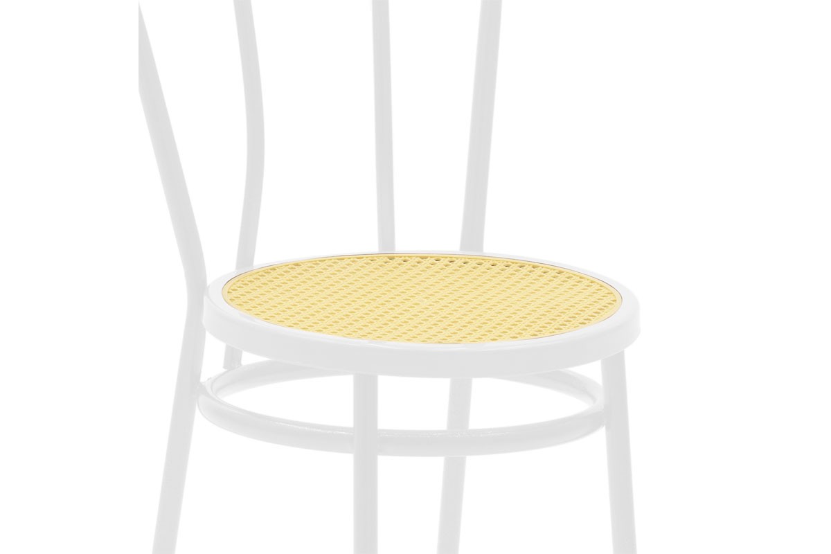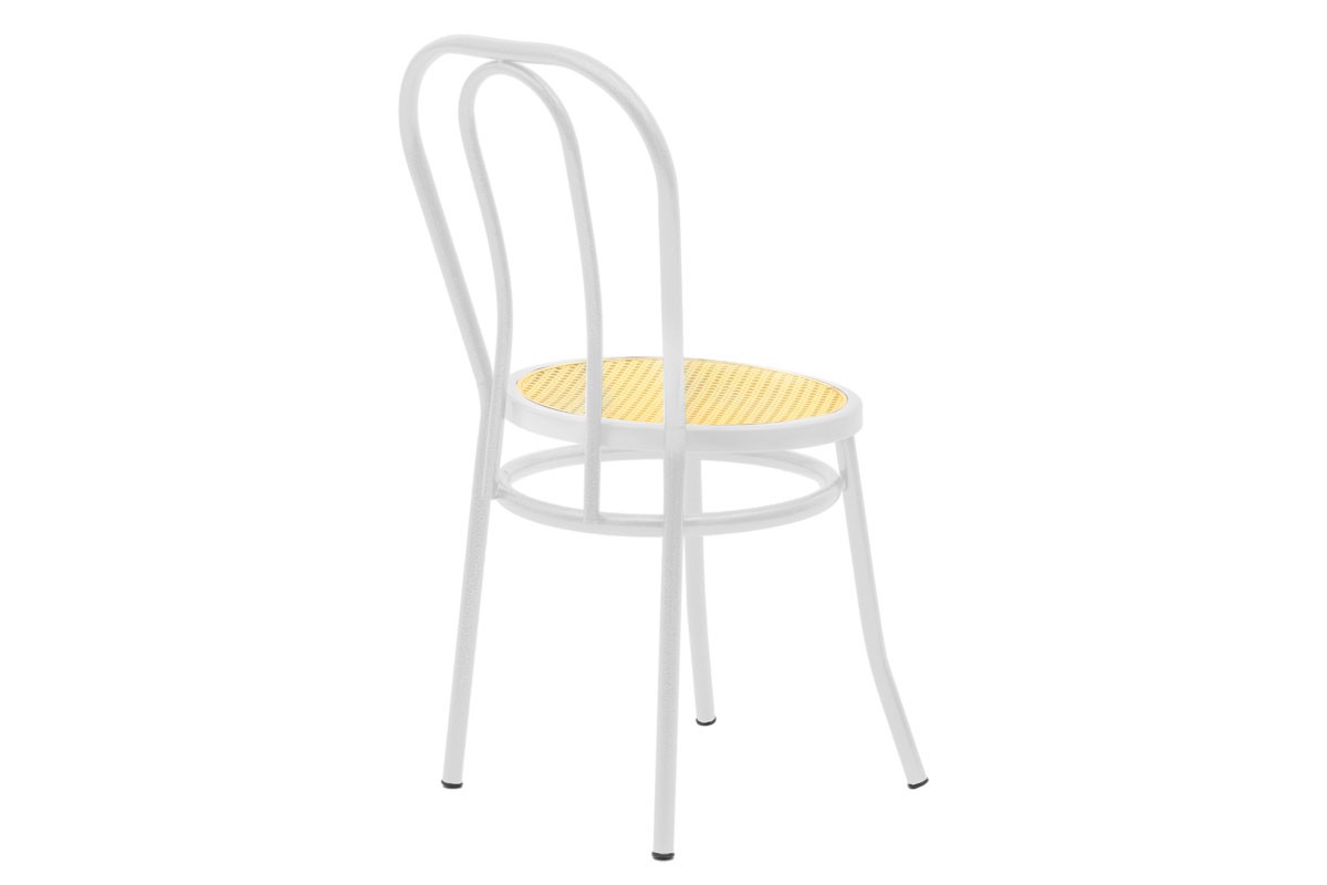 Καρέκλα κατασκευασμένη από σταθερό μεταλλικό σκελετό σε λευκό χρώμα και έδρα από σχοινί με πλέξη rattan εξαιρετικής ποιότητας και αντοχής στη φθορά και στο χρόνο σε μπεζ χρώμα. Ιδανική και πρακτική επιλογή που θα ανανεώσει τη διακόσμηση του χώρου που θα την τοποθετήσετε και θα βοηθήσεισ την οργάνωσή του. Κατάλληλη για τον προσωπικό και τον επαγγελματικό σας χώρο.