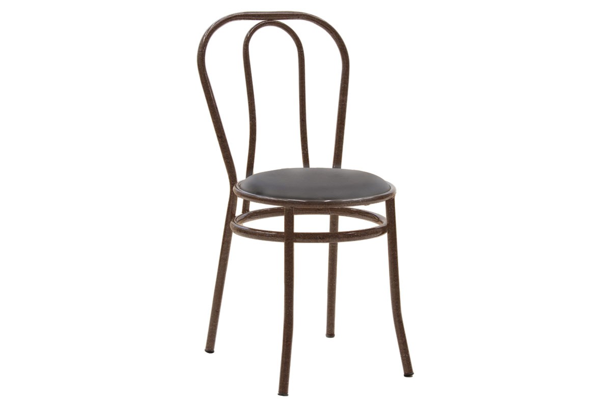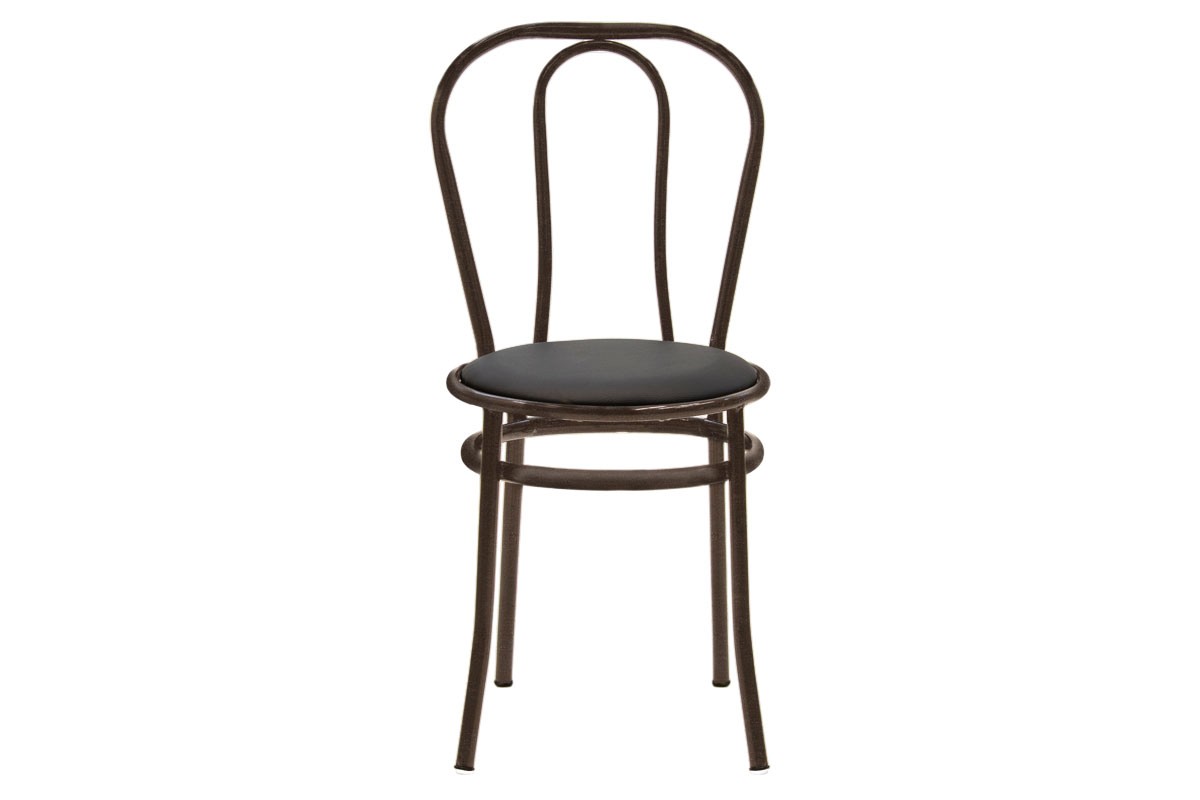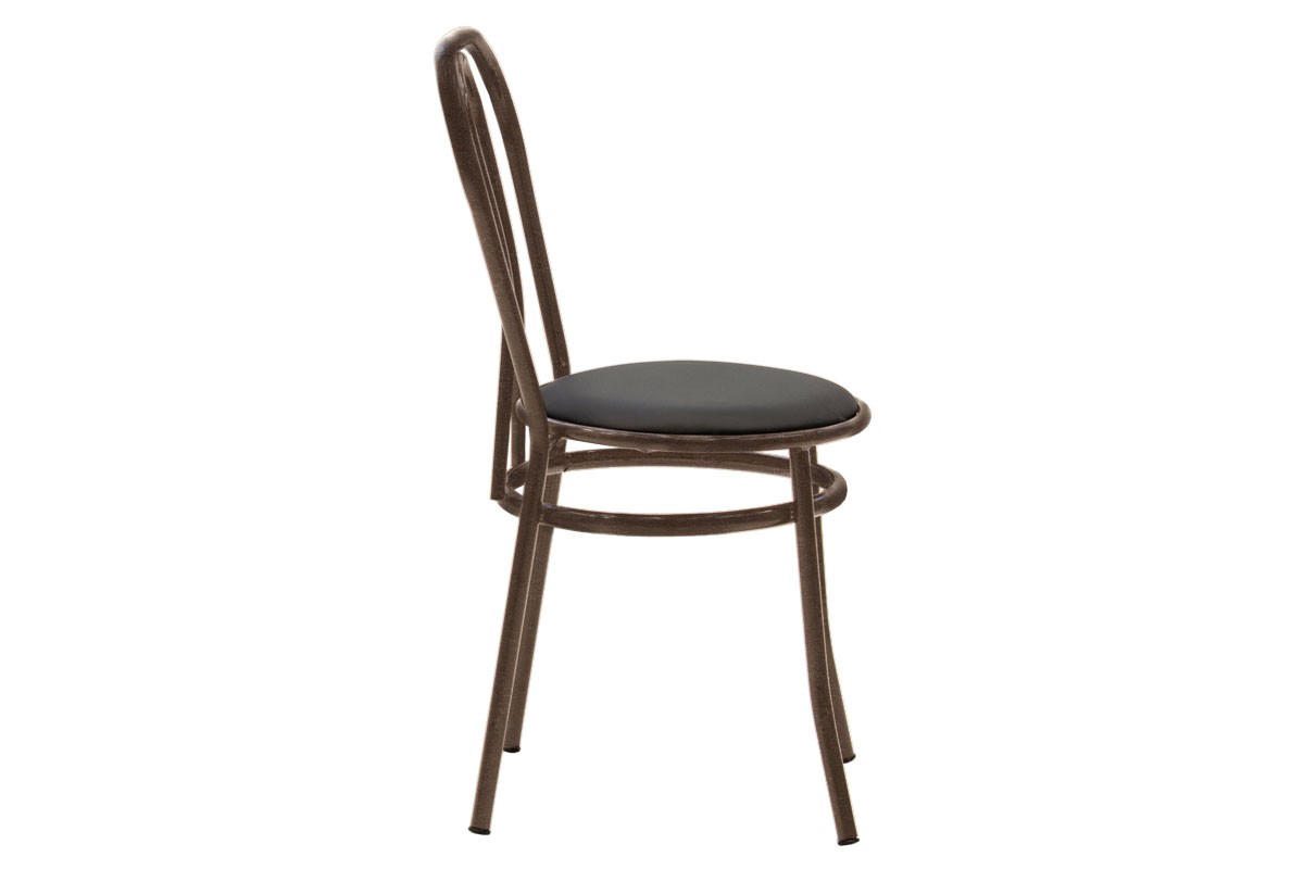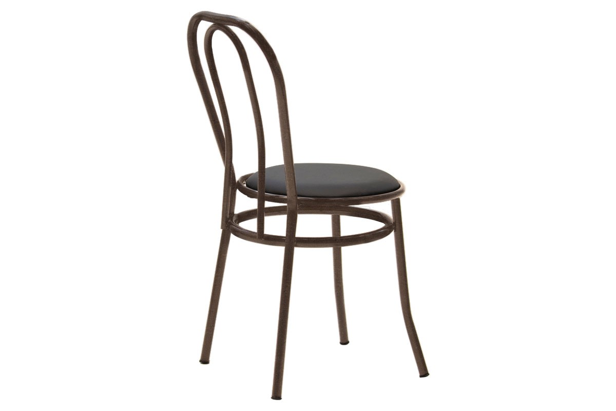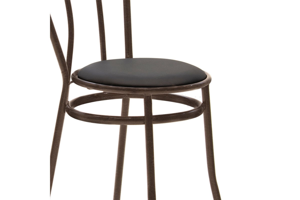 Καρέκλα κατασκευασμένη από σταθερό μεταλλικό σφυρίλατο σκελετό σε καφέ χρώμα και έδρα από τεχνόδερμα (PU) εξαιρετικής ποιότητας και αντοχής στη φθορά και στο χρόνο σε μαύρο χρώμα. Ιδανική και πρακτική επιλογή που θα ανανεώσει τη διακόσμηση του χώρου που θα την τοποθετήσετε και θα βοηθήσεισ την οργάνωσή του. Κατάλληλη για τον προσωπικό και τον επαγγελματικό σας χώρο.