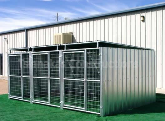 Μεταλλικός κλωβός/σπίτι κατοικιδίων ζώων με στέγαστρο απο Λαμαρίνα καθώς επίσης πλαγιοκάλυψη απο Λαμαρίνα ηλεκτρογαλβανισμένη εν θερμό και βαμμένη ηλεκτροστατικά. Απόλυτα ανθεκτική κατασκευή χάρη στις ισχυρές δοκούς απο γαλβανισμένο σίδερο με υψηλή αντοχή στις ακραίες καιρικές συνθήκες. Διαθέτει μεγάλη ανοιγόμενη πόρτα ενώ η επικλινής οροφή επιτρέπει την απορροή των όμβρυων υδάτων και του χιονιού. Το ενισχυμένο μεταλλικό πλέγμα επιτρέπει τον αερισμό του εσωτερικού χώρου. Η συναρμολόγηση γίνεται έυκολα χωρίς να χρειάζεται κάποια ιδιαίτερη γνώση. Τέλος μπορεί κατα παραγγελία να κατασκευαστεί και στις διαστάσεις που εσείς επιθυμείτε.