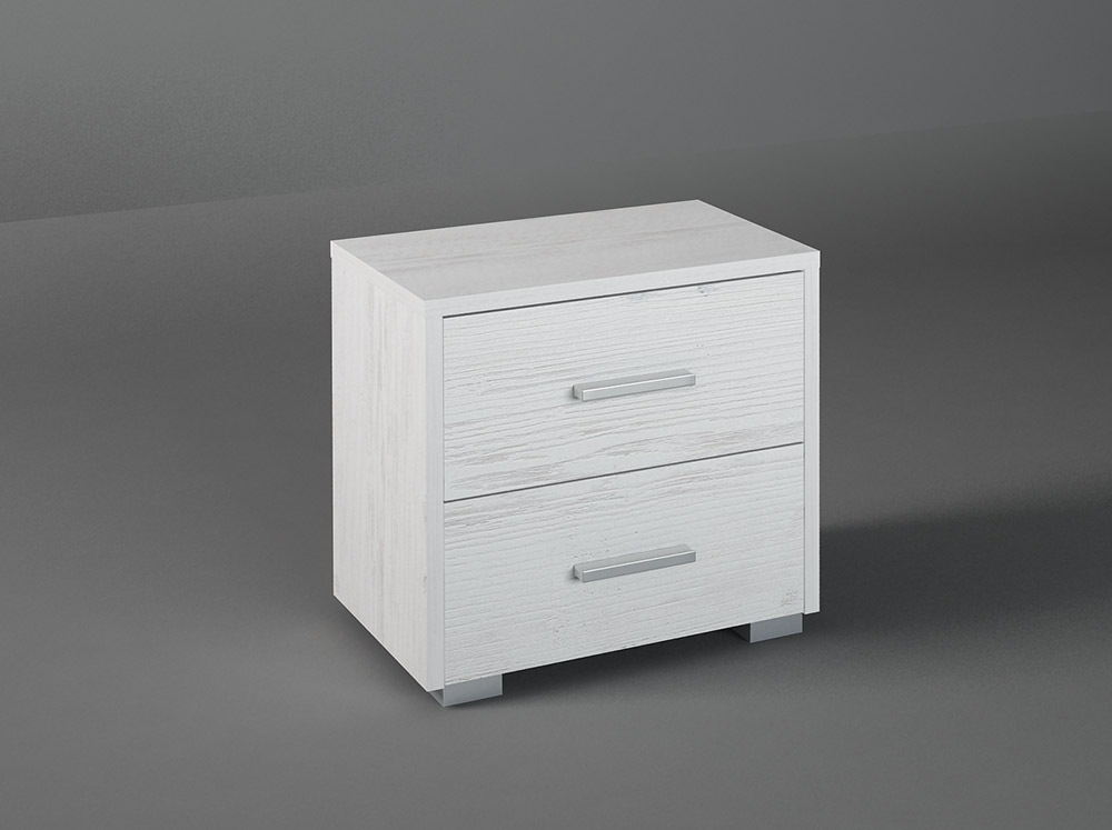 Κομοδίνο από ενισχυμένο σκελετό μελαμίνης άριστης ποιότητας και ελληνικής προελεύσεως, σε χρώμα λευκό ρουστίκ. Διαθέτει 2 συρτάρια με inox χερούλια κατάλληλο για να πλαισιώσετε την κρεβατοκάμαρα σας καθώς και τον επαγγελματικό σας χώρο (ξενοδοχείο,ξενώνες κλπ).