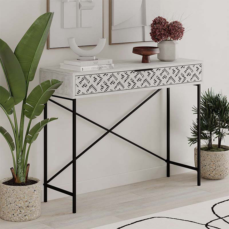 Ετικέτες: Κονσόλα Heaton Megapap μεταλλική - μελαμίνης χρώμα λευκό αντικέ 110x35, 6x90εκ., GP037-0191, 2, Έπιπλα εσωτερικού χώρου > Κονσόλες
