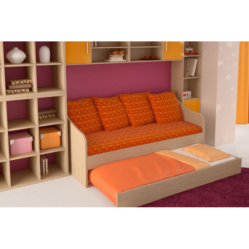 Κρεβάτι-καναπές "SILKY" με συρόμενο κρεβάτι σε χρώμα δρυς 80x190