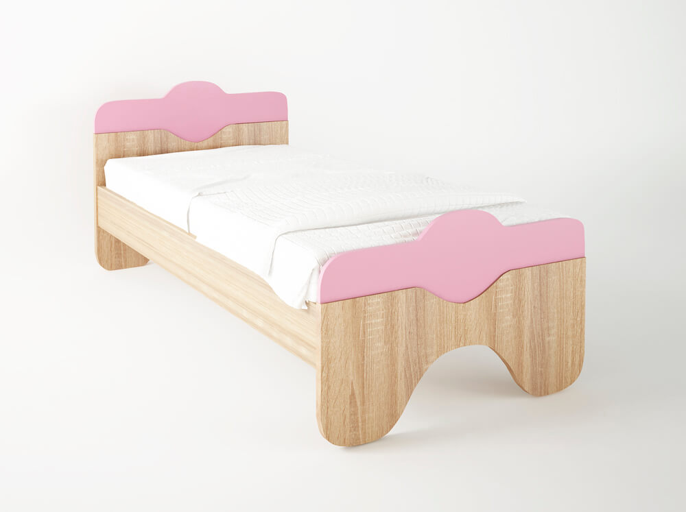 Κρεβάτι παιδικό μονό απο ενισχυμένο σκελετό μελαμίνης(πάχους 18mm) υψηλής ποιότητας και ελληνικής προελεύσεως, σε χρώμα δρυς-ροζ. Διαθέτει αντιχαρακτική επιφάνεια για αντοχή στις γρατζουνιές και στρογγυλεμένες γωνίες για αποφυγή ατυχημάτων. Ένα μοντέρνο έπιπλο για το παιδικό δωμάτιο.