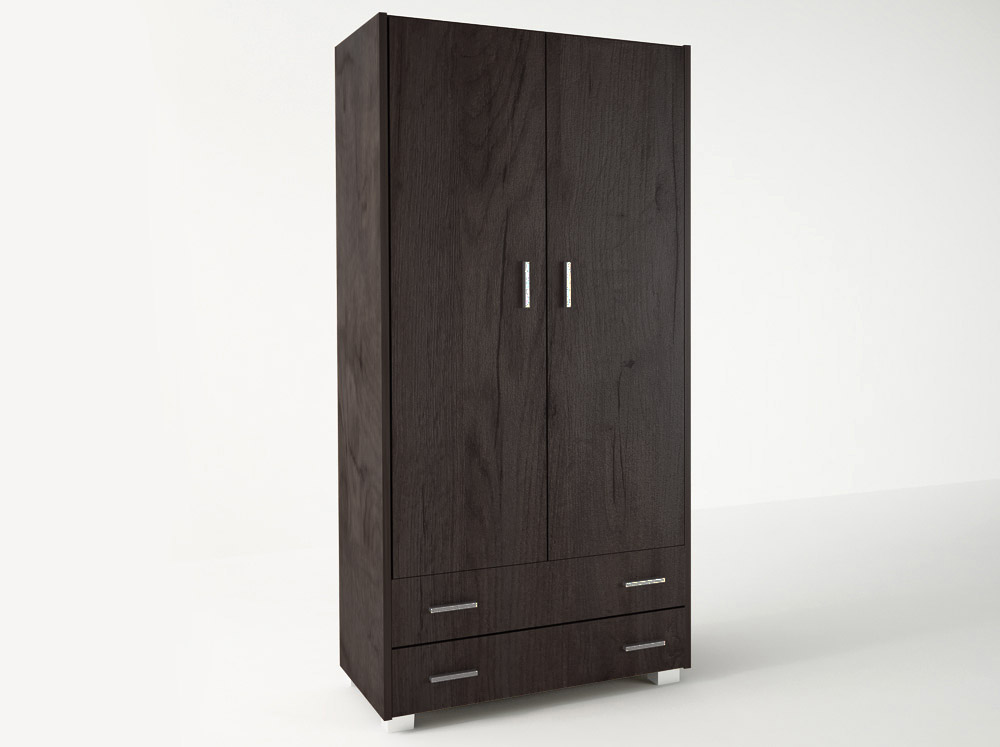 Ντουλάπα δίφυλλη ελληνικής προέλευσης και κατασκευής από μελαμίνη άριστης ποιότητας και ανθεκτικότητας. Η ντουλάπα διαθέτει 2 βαθιά συρτάρια αποθήκευσης μία μεταλλική βέργα για κρεμάστρες και μεταλλικά χερούλια σε όλα τα φύλλα. Μία μοντέρνα επιλογή για να κοσμήσετε και να οργανώσετε το χώρο σας.