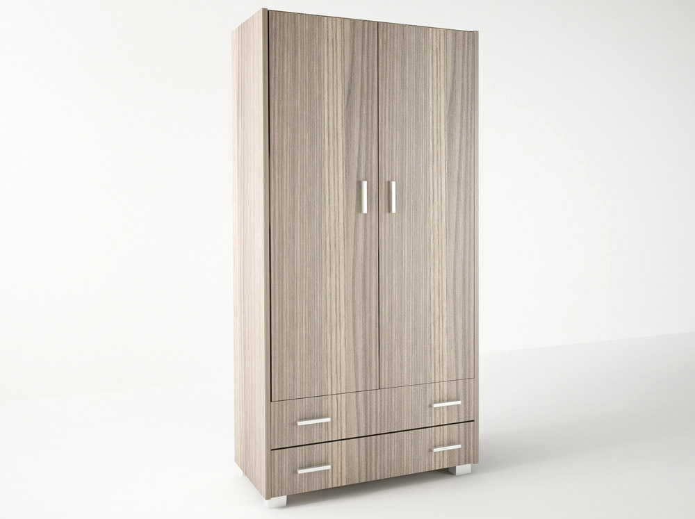 Ντουλάπα δίφυλλη ελληνικής προέλευσης και κατασκευής από μελαμίνη άριστης ποιότητας και ανθεκτικότητας. Η ντουλάπα διαθέτει 2 βαθιά συρτάρια αποθήκευσης μία μεταλλική βέργα για κρεμάστρες και μεταλλικά χερούλια σε όλα τα φύλλα. Μία μοντέρνα επιλογή για να κοσμήσετε και να οργανώσετε το χώρο σας.