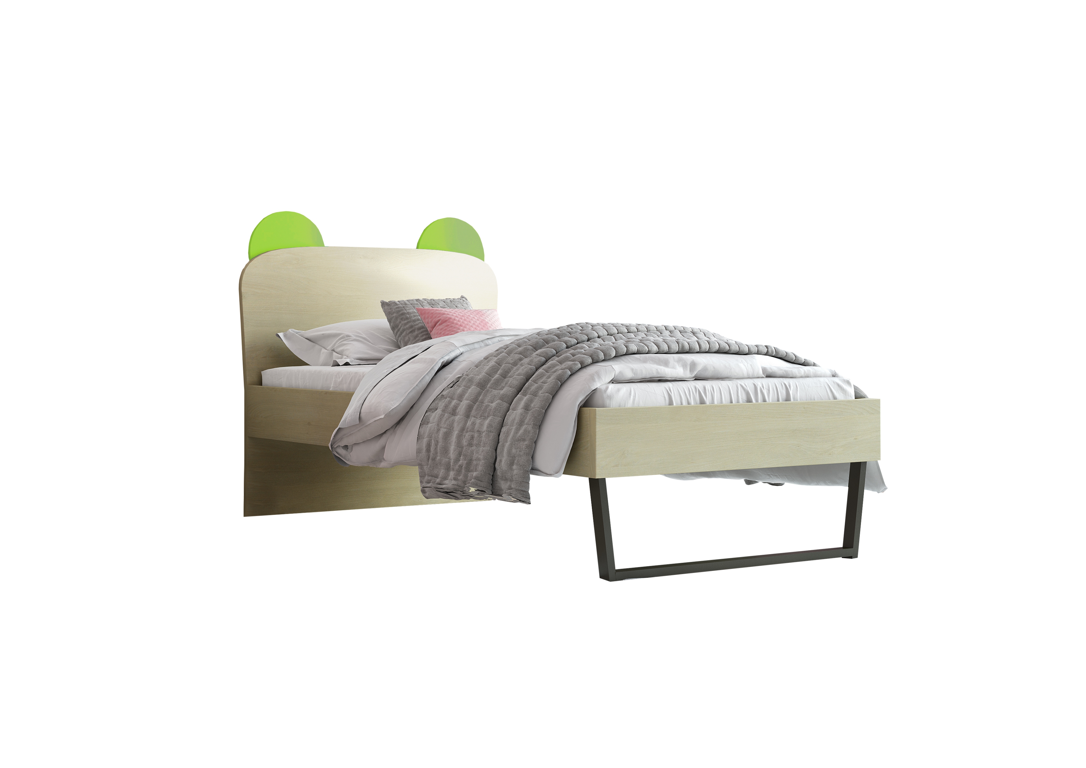 Κρεβάτι παιδικό ημίδιπλο απο ενισχυμένο σκελετό μελαμίνης(πάχους 18mm) υψηλής ποιότητας και ελληνικής προελεύσεως, σε χρώμα δρυς-λαχανί, με μεταλλικό πόδι. Ένα μοντέρνο έπιπλο για το παιδικό δωμάτιο.