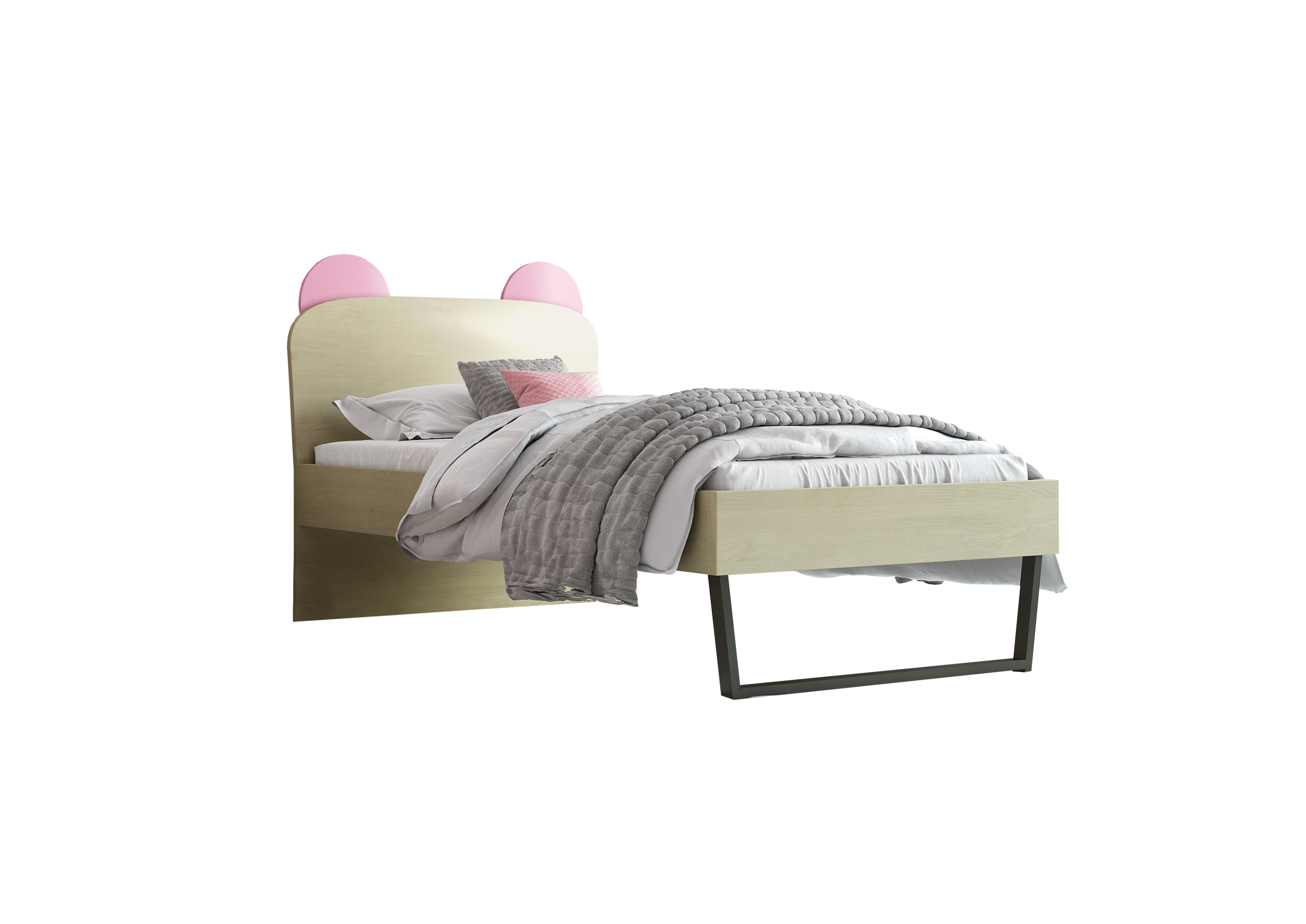 Κρεβάτι παιδικό ημίδιπλο απο ενισχυμένο σκελετό μελαμίνης(πάχους 18mm) υψηλής ποιότητας και ελληνικής προελεύσεως, σε χρώμα δρυς-ροζ, με μεταλλικό πόδι. Ένα μοντέρνο έπιπλο για το παιδικό δωμάτιο.