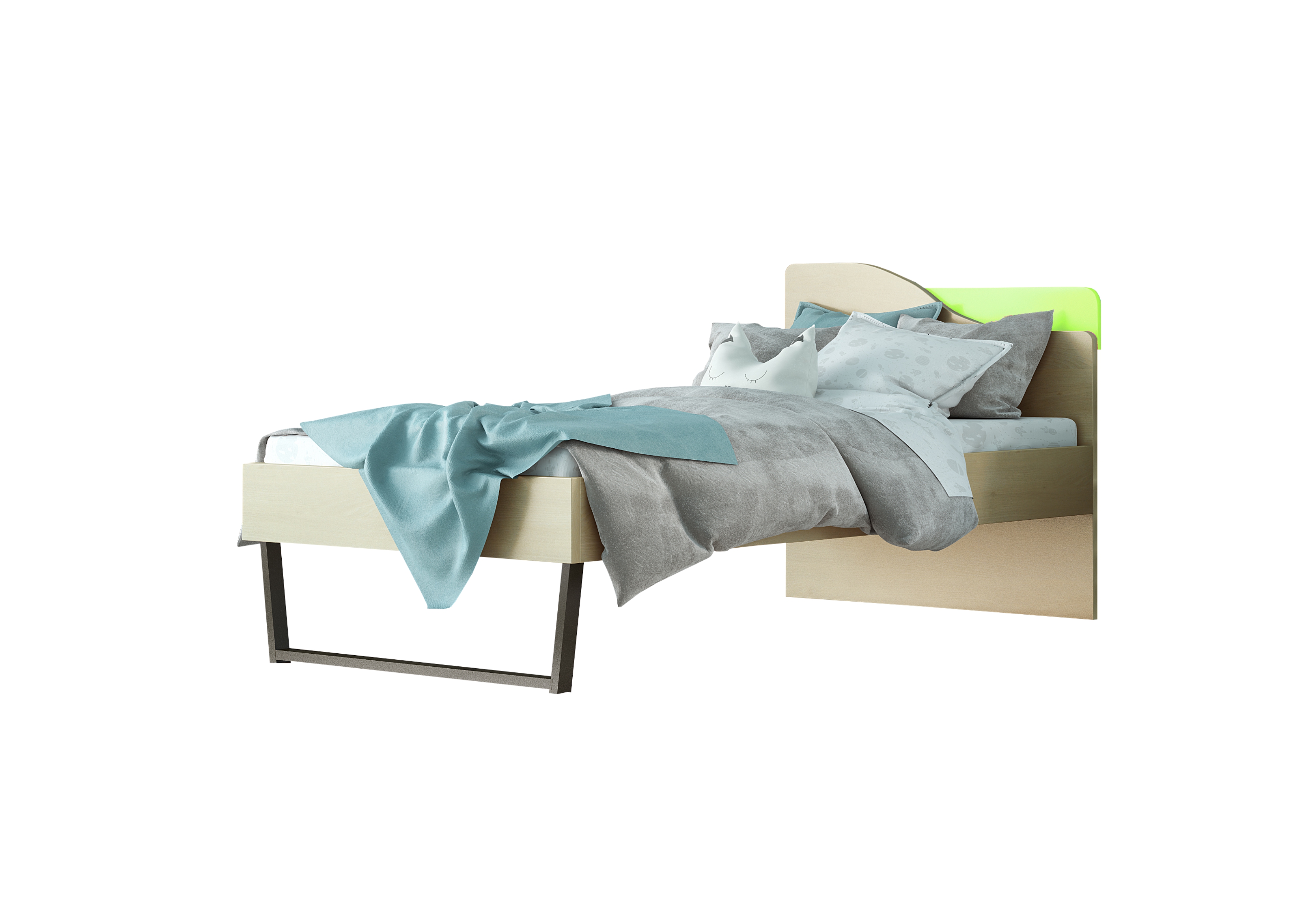 Κρεβάτι παιδικό ημίδιπλο απο ενισχυμένο σκελετό μελαμίνης(πάχους 18mm) υψηλής ποιότητας και ελληνικής προελεύσεως, σε χρώμα δρυς-λαχανί, με μεταλλικό πόδι. Ένα μοντέρνο έπιπλο για το παιδικό δωμάτιο.