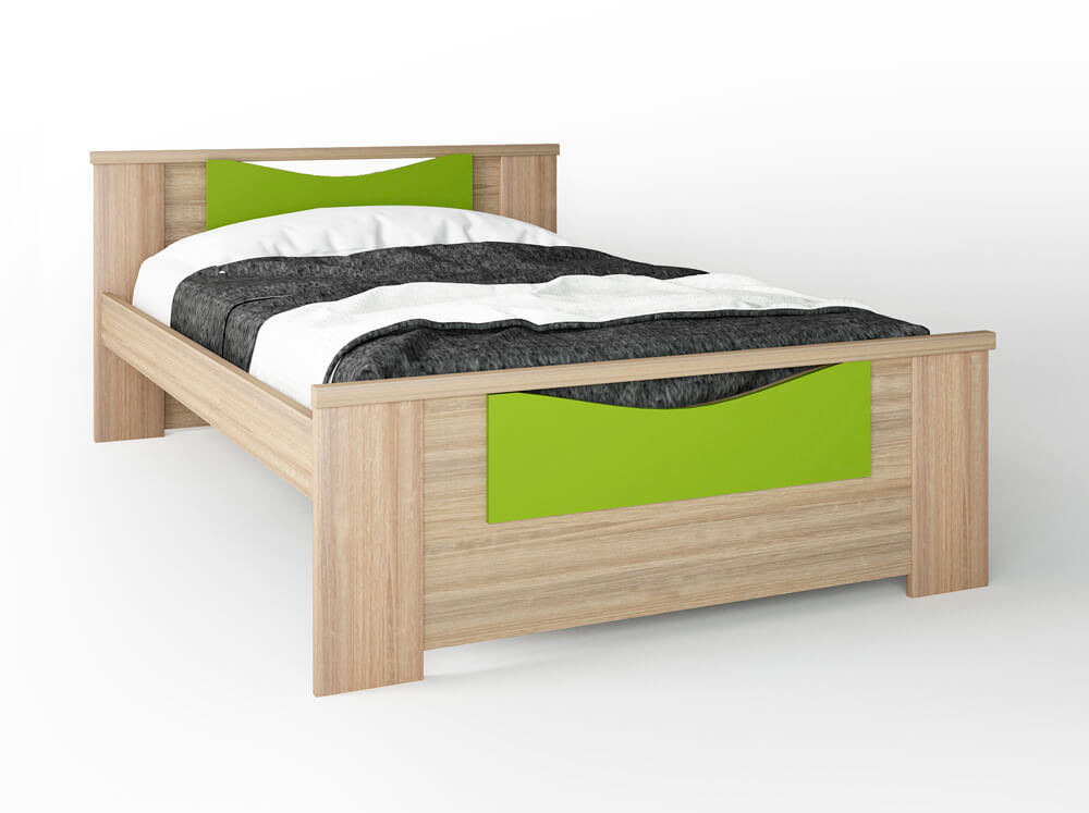Κρεβάτι παιδικό ημίδιπλο απο ενισχυμένο σκελετό μελαμίνης(πάχους 18mm) υψηλής ποιότητας και ελληνικής προελεύσεως, σε χρώμα δρυς-λαχανί. Ένα μοντέρνο έπιπλο για το παιδικό δωμάτιο.