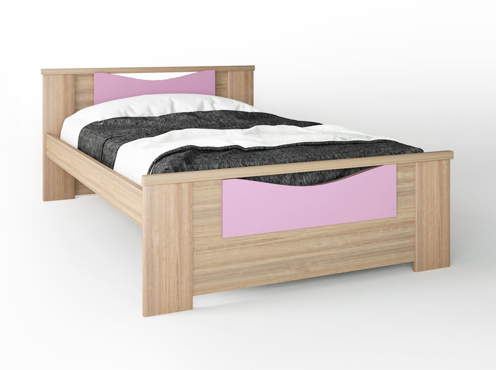 Κρεβάτι παιδικό ημίδιπλο απο ενισχυμένο σκελετό μελαμίνης(πάχους 18mm) υψηλής ποιότητας και ελληνικής προελεύσεως, σε χρώμα δρυς-ροζ. Ένα μοντέρνο έπιπλο για το παιδικό δωμάτιο.