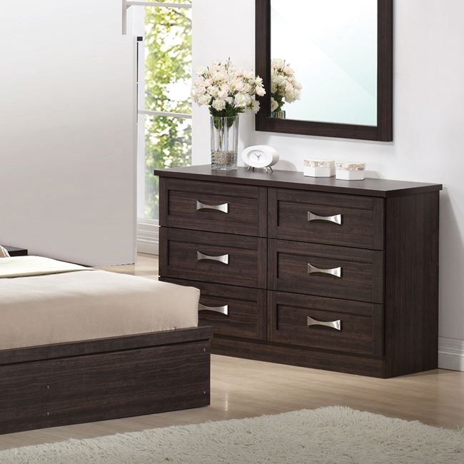 Διαθέτει έξι ευρύχωρα συρτάρια για να τοποθετήσετε τα προσωπικά σας αντικείμενα. Τα χερούλια είναι μεταλλικά σε ασημί απόχρωση.
