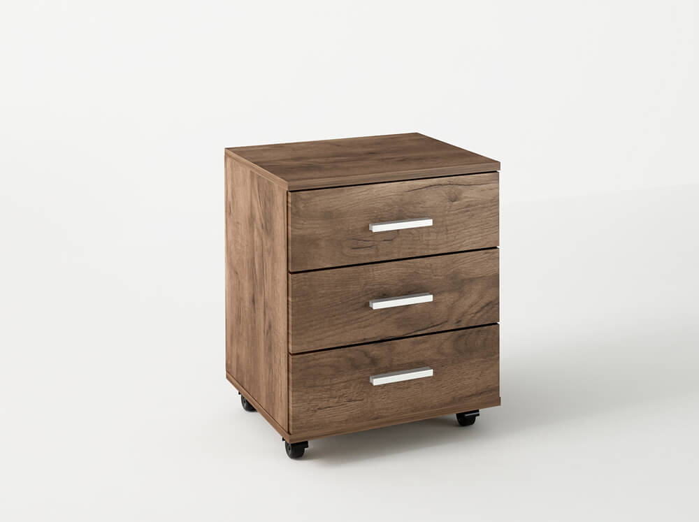 Συρταριέρα τροχήλατη κατασκευασμένη από μελαμίνη υψηλής ποιότητας και ανθεκτικότητας, σε χρώμα καρυδί. Διαθέτει 3 αποθηκευτικούς χώρους με μηχανισμό για εύκολη χρήση. Φέρει ροδάκια για εύκολη μετακίνηση. Μία μοντέρνα επιλογή για να κοσμήσετε και να οργανώσετε το χώρο σας. Κατάλληλη και για προσωπική αλλά και επαγγελματική χρήση(π.χ γραφείο).