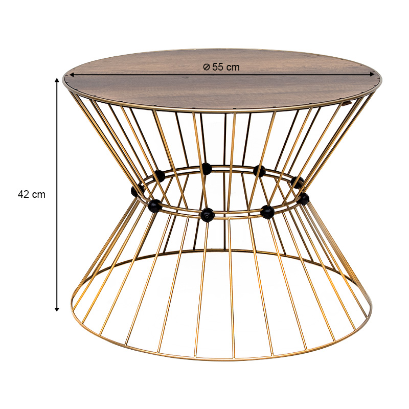 Τραπεζάκι σαλονιού Girene Megapap μεταλλικό - Mdf χρώμα χρυσό - καρυδί Ø55x42εκ.